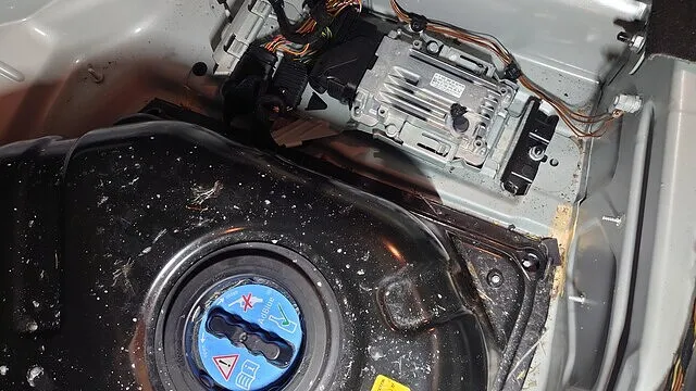 E350のアドブルーのコントロールユニットはトランクフロアを外したら出てきます